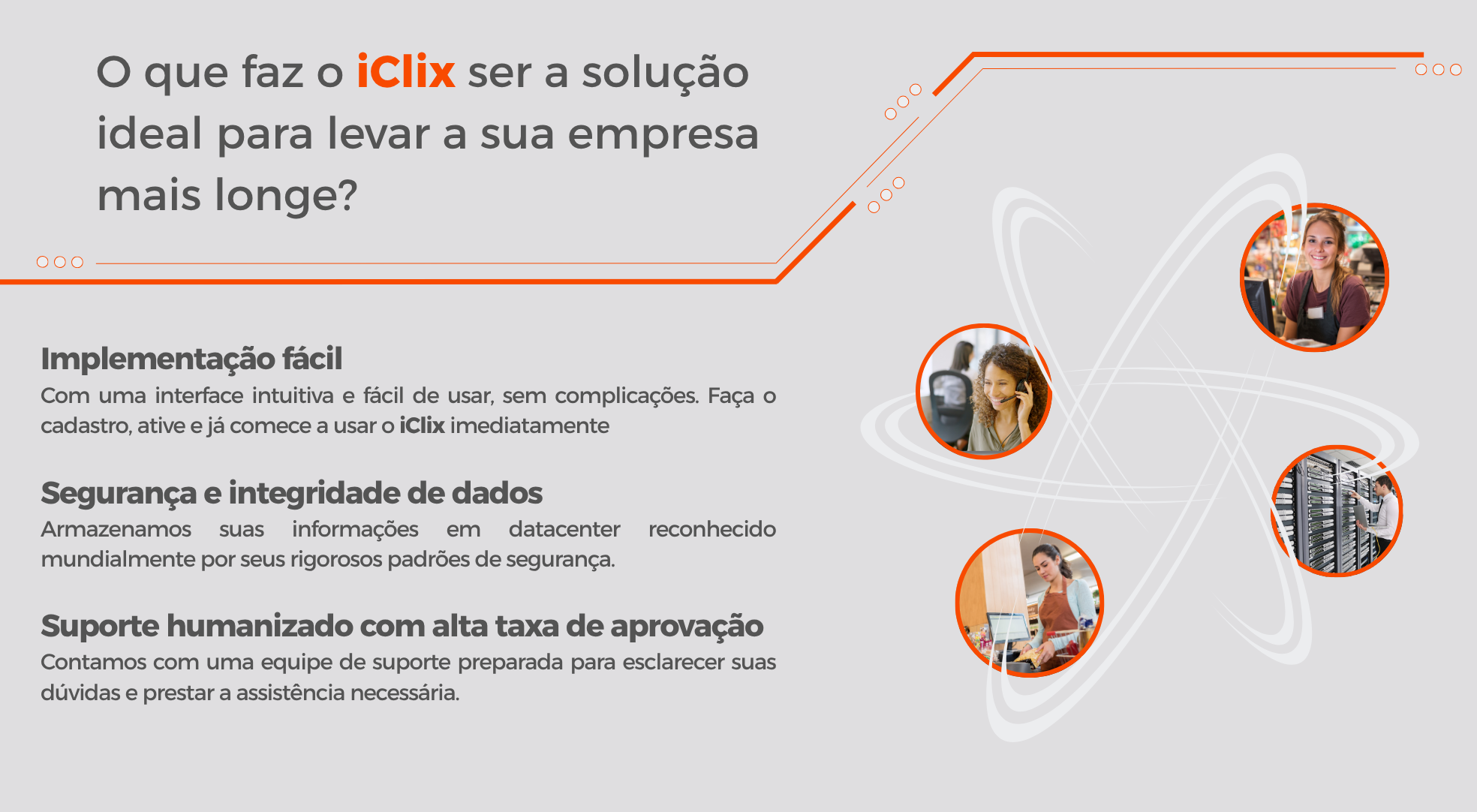 Uma interface intuitiva que garante praticidade no dia a dia, mesmo para quem não é expert em tecnologia. Com o iClix o seu negócio cresce mais rápido que a velocidade da luz!